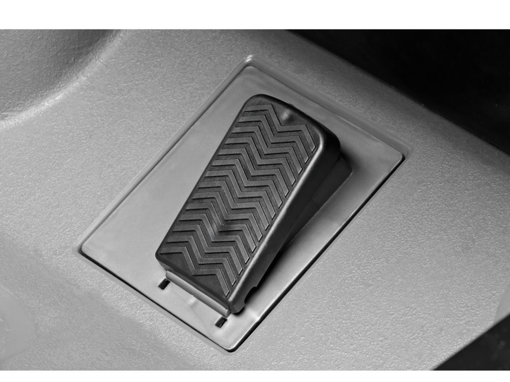 Druhá, vyšší rychlost, je vybavena bezpečnostním zámkem pro méně zkušené řidiče. Akcelerátor a brzda jsou v jednom pedálu: sešlápnutím se autíčko rozjíždí, uvolněním automaticky a plynule brzdí.