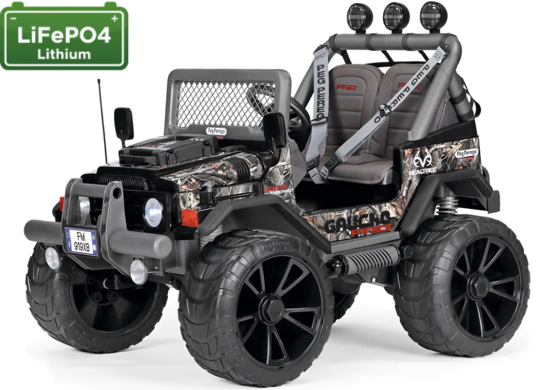 Peg Perego Gaucho Pro Realtree Lithium je absolutní špičkou v segmentu dětských elektrických terénních vozidel, určený pro dobrodružné jezdce od 6 let. Tento dvoumístný elektrický jeep kombinuje bezkonkurenční výkon, realistické jízdní vlastnosti a špičkovou výbavu.